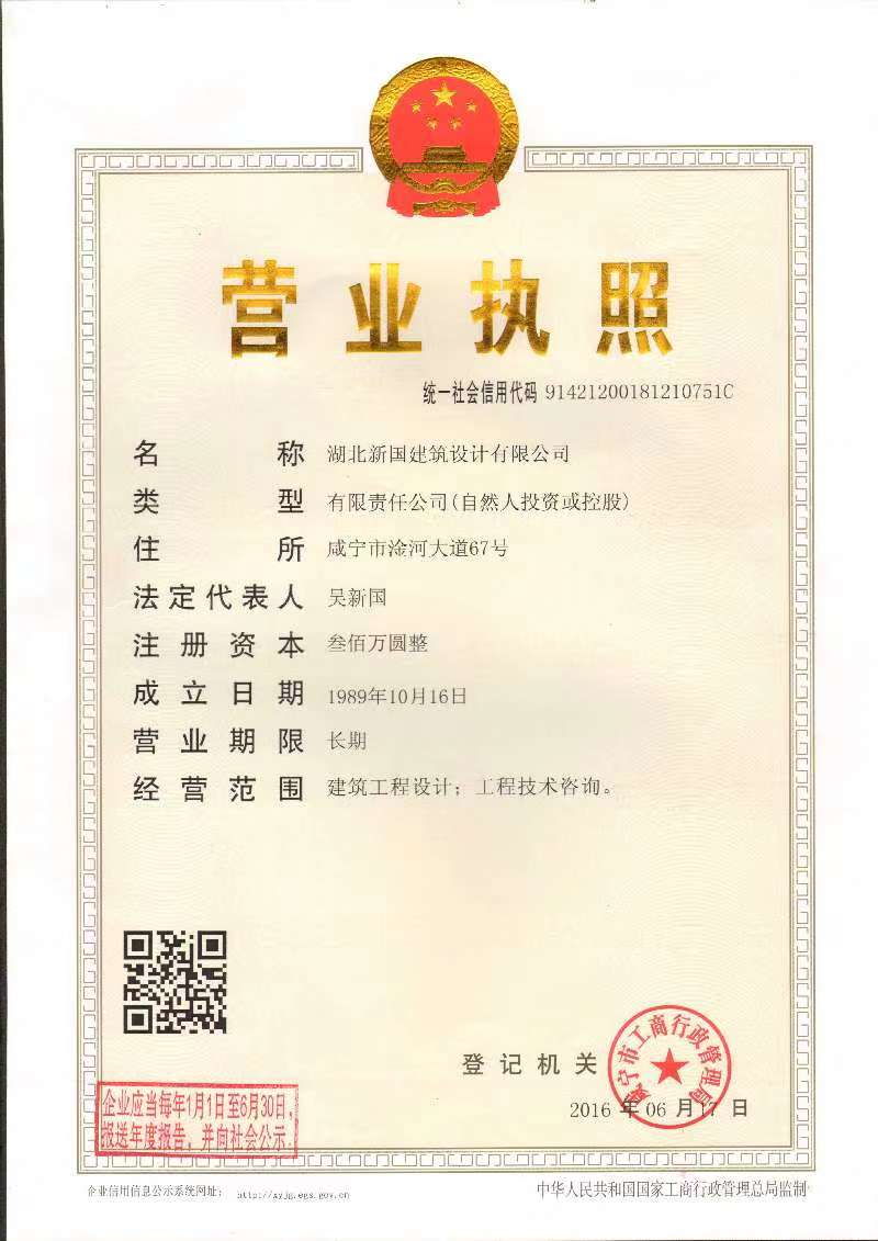 湖北新國建筑設計有限公司地處香城泉都的湖北省咸寧市,前稱為咸寧糧食建筑設計院,最早成立于1965年,2010年經改制后成立湖北新國建筑設計有限公司[證書編號:A242008152],主要經營建筑工程設計、裝飾工程設計、幕墻工程設計、輕鋼結構工程設計、建筑智能化系統(tǒng)設計、照明工程設計、消防工程設計、建設工程總承包業(yè)務及項目管理和技術與管理服務。 本公司現有在職職工35人,注冊資金300萬元,擁有一支經驗豐富的專業(yè)人才隊伍,有多名設備、建筑、結構等專業(yè)技術人員,其中:高級工程師3人,工程師19人,一級注冊結構工程師2人,二級注冊結構工程師2人,二級注冊建筑師4人。我公司曾多次在市級優(yōu)秀設計竟賽中榮獲一、二、三等獎,1988年大跨度鋼筋混泥土拱板屋面設計榮獲湖北省科技進步二等獎,設計產品曾推廣到黑龍江,四川,河南等多個省市。近兩年來,企業(yè)業(yè)績不斷提升,完成的設計工程項目的數量增多、規(guī)模增大,同時并加強了與省內外甲級設計院的縱橫向聯(lián)合,使我公司的設計質量、業(yè)務水平不斷提高,在業(yè)內形成了較好的口碑。 自成立以來,我公司一直以"精益求精、技術創(chuàng)新、科學設計、服務盡心"的經營理念,努力為業(yè)主和客戶提供優(yōu)質的勘測設計產品和服務,履行好社會責任。二十多年來我院先后完成了上千項建筑工程的勘測設計工作,業(yè)務范圍廣,為咸寧地區(qū)及周邊城市建筑事業(yè)的發(fā)展作出了重要貢獻,受到廣大客戶的好評。